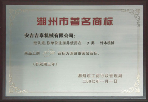 “天賦”牌機械產(chǎn)品,被評為浙江省湖州市名牌產(chǎn)品